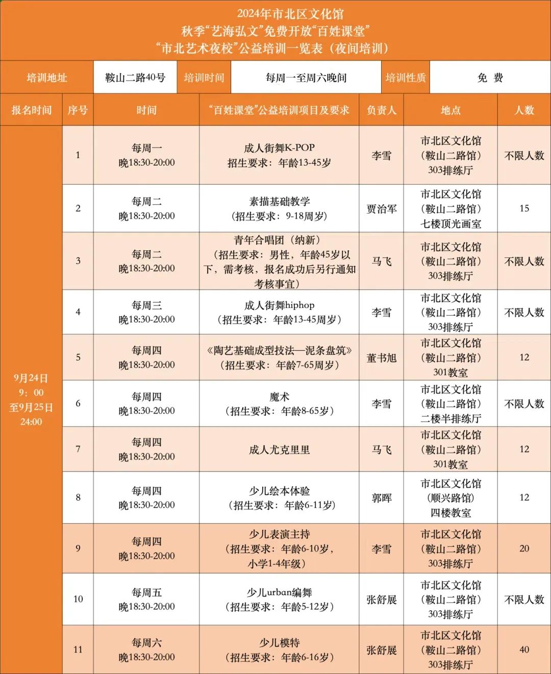 2024年秋季“艺海弘文”免费开放“百姓课堂”